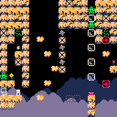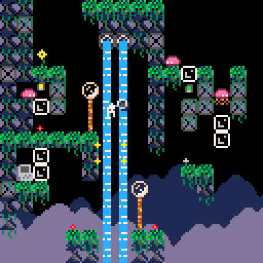 During the development of It's OK to Jump Down, we began thinking about reworking the game's design into a linear format, partially inspired by Ryan's experience with kaizo SMW. Specifically, we were interested in pivoting to hand-built levels to see how the previous mechanics would fit, as well as what new ones we could come up with. This was a great opportunity to take the lessons learned from Jump Down and build something from scratch that better utilizes the limitations and creative potential of Pico-8. We are very proud of it and we hope you enjoy!
